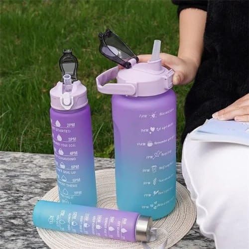 Motivational Water Bottle Set (Pack of 3) – Time-Marked & Leak‑Proof